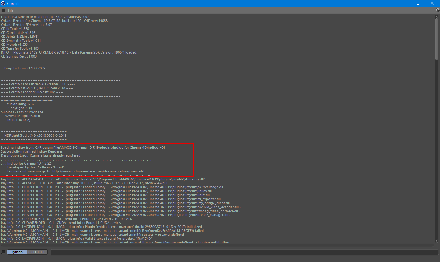 - Topic: [BUG] Indigo camera tag in C4D R19