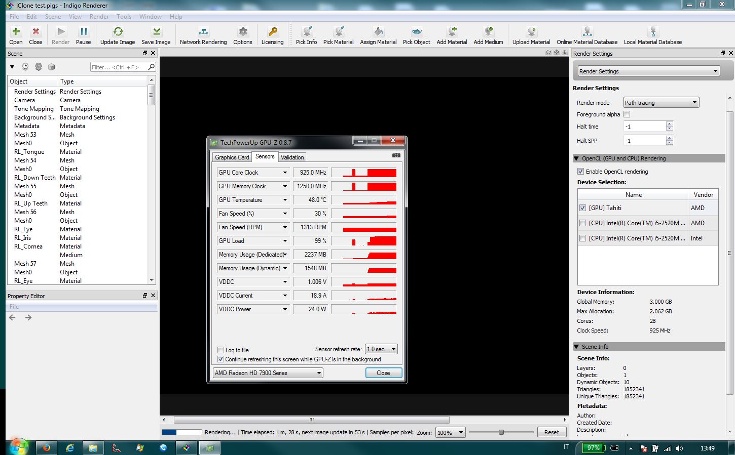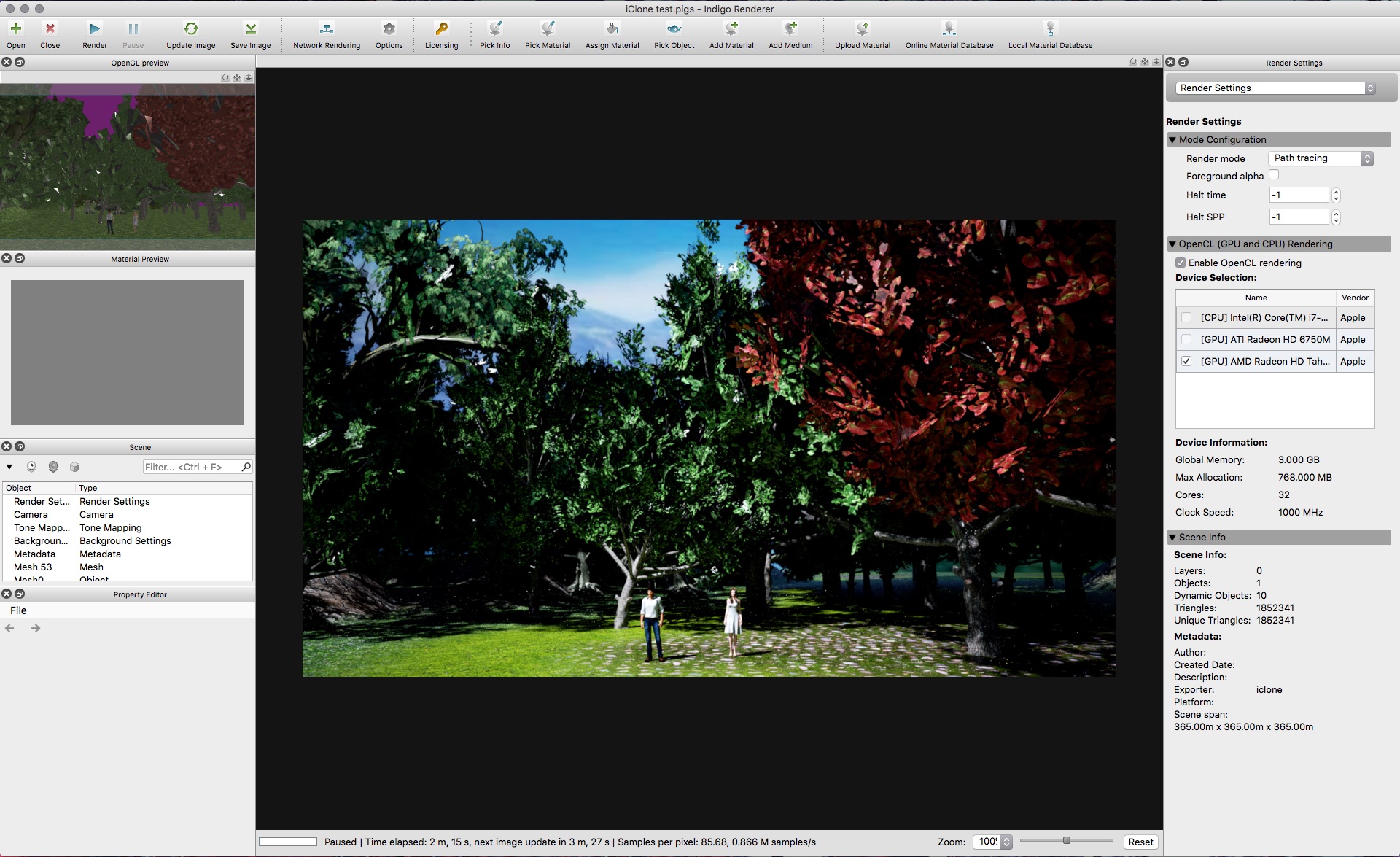 I can't understood why, your 7970 GPU it's the same architecture as mine.Oscar J wrote:That scene works fine for me with GPU, it just takes like a minute to build the OpenCL kernels due to the many textures.
