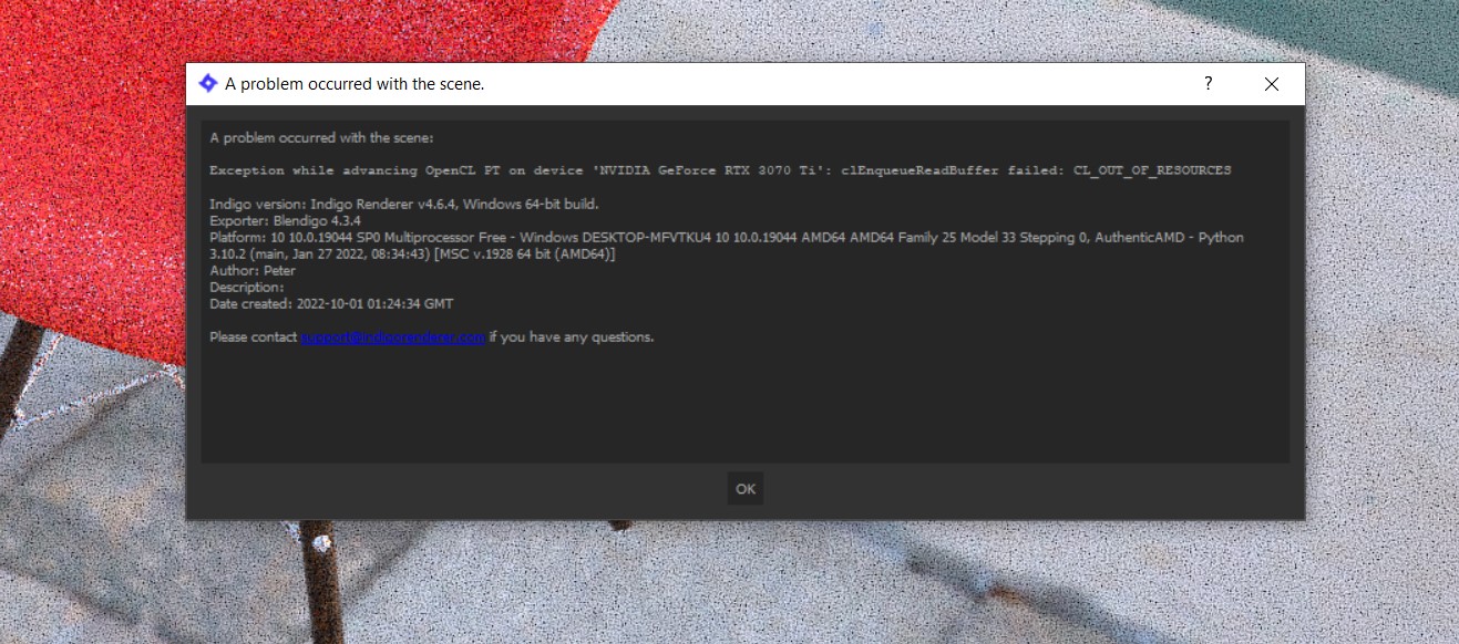 The same Project (Indigo 4.6.4) sometimes causes "Out of resource" error on my videocard (NVIDIA GeForce RTX 3060 Laptop GPU).