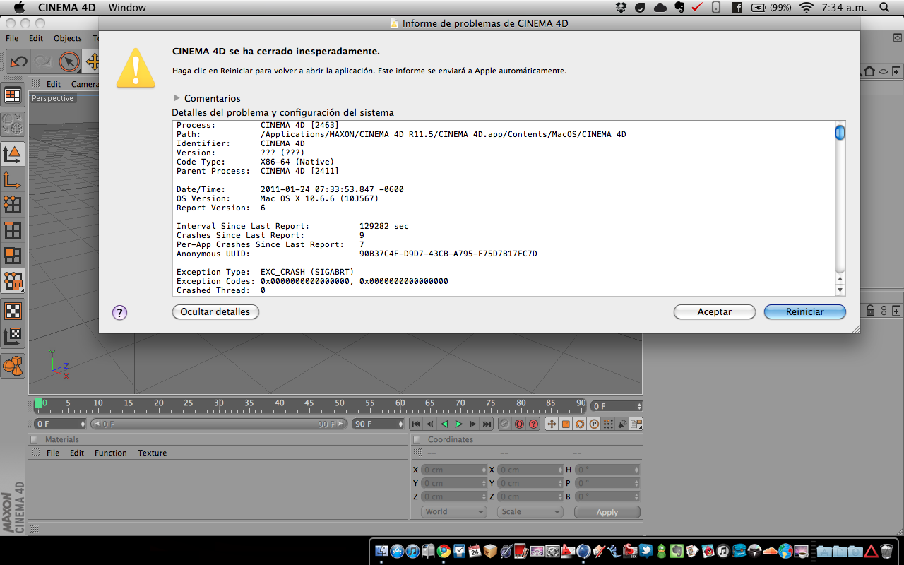 Thanks guys, apparently it was able to export an igs before crashing but when I open it none of images I have applied to any materials render so it must not be exporting those. I attached the OSX crash report for cinema, the Cinema console showed no errors everything appears to export and it says that it has launched Indigo but Indigo never opens. Thanks for the help!