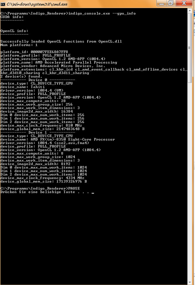 If no, go to Indigo install dir and create a txt file with the folowwing code and save it as GPU_test.cmd (the cmd ending is importand!).