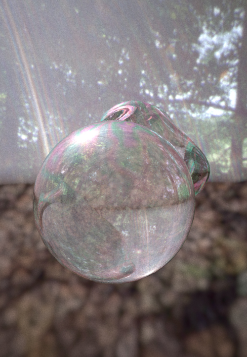 I think there shouldn't really be any refraction in a soap bubble, it's so thin. Try arch glass as substrate?