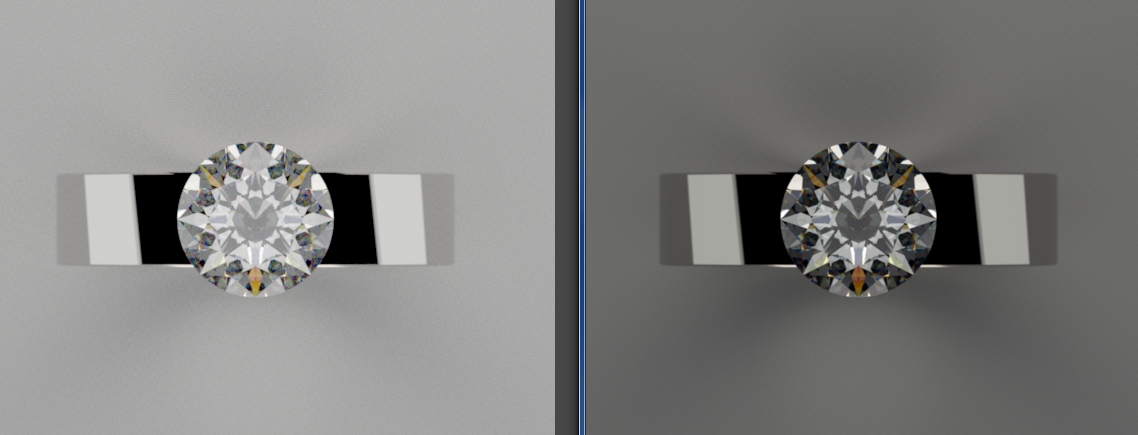 See these results with different light setups. On the left are internal renderings, on the right rendered with Indigo. Picture 01 was lighted with HDRI, the next two with area lights.
