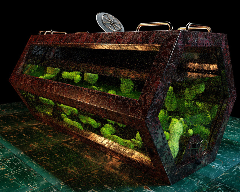Still cooking actually... I ran out of time to finish and made some texturing mistakes. A wide view of the glass, water and goo also stretched render time into infinity. But I was committed to submitting an entry.