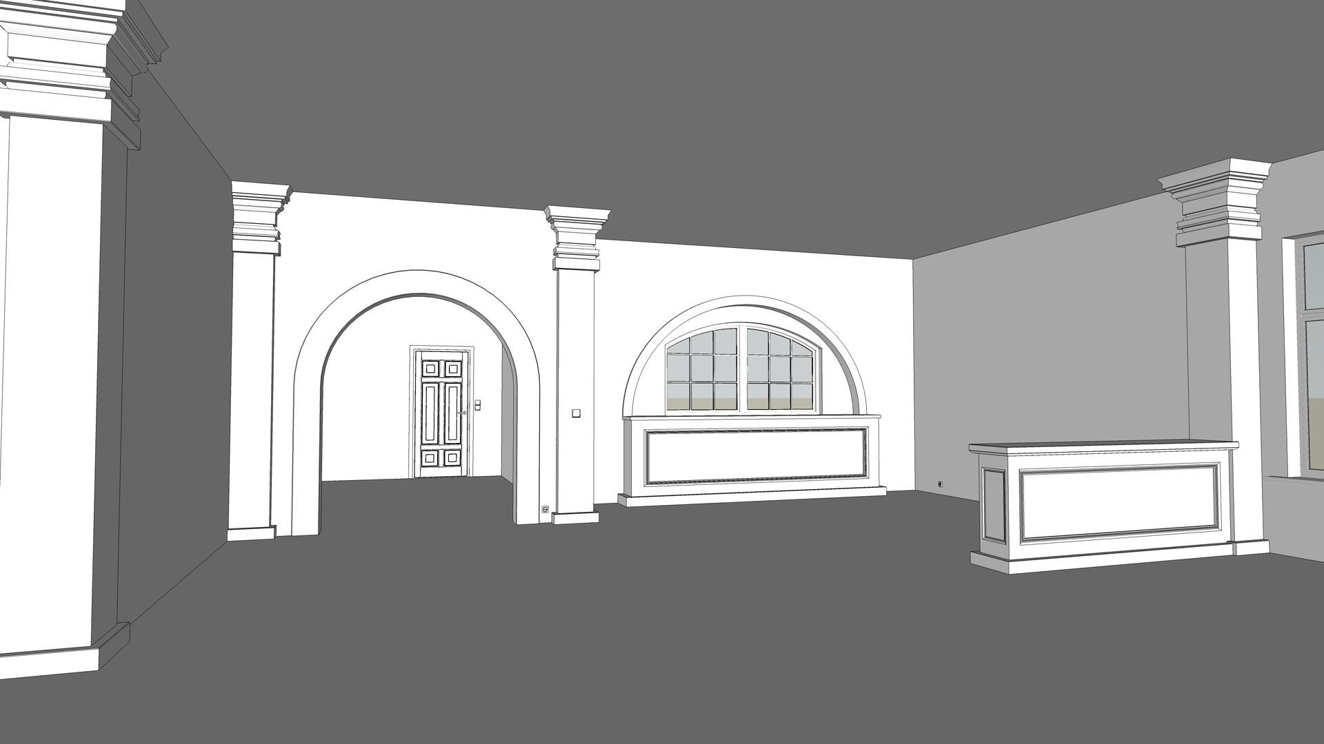 EDIT: To what extent is 'No changes to the architecure allowed.' defined? I mean, does that just mean the layout / design of the space? The frames and crown molding around the column are fair play? What about detailing / modification to the wall / ceiling surfaces?