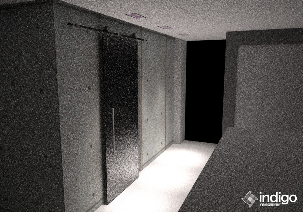 Then I render the the scene into Indigo Renderer and here comes the weird part. And this happends about every other time EVENTHOUGH i have changed NOTHING in the settings in the material editor, what happends is that I always see the actual light coming down the wall and then hitting the floor which looks perfect, but sometimes the ACTUAL "lightbulb" goes dark. I mean the roof is completely black but you can still see the light coming down from it.
