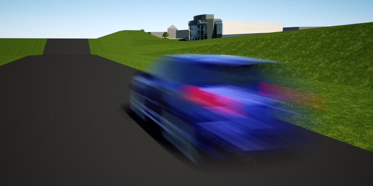 e:occlusion of the background by the vehicle is centered over the whole shot, but during the