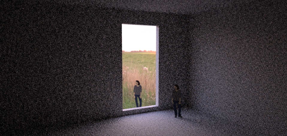 1) NO EXIT PORTAL 2) EXIT PORTAL ADDED 3) NO EXIT PORTAL - Sun & sky setting, note the lady stood outside is visible. 4) NO EXIT PORTAL - HDRi setting, note the lady stood outside is visible ]