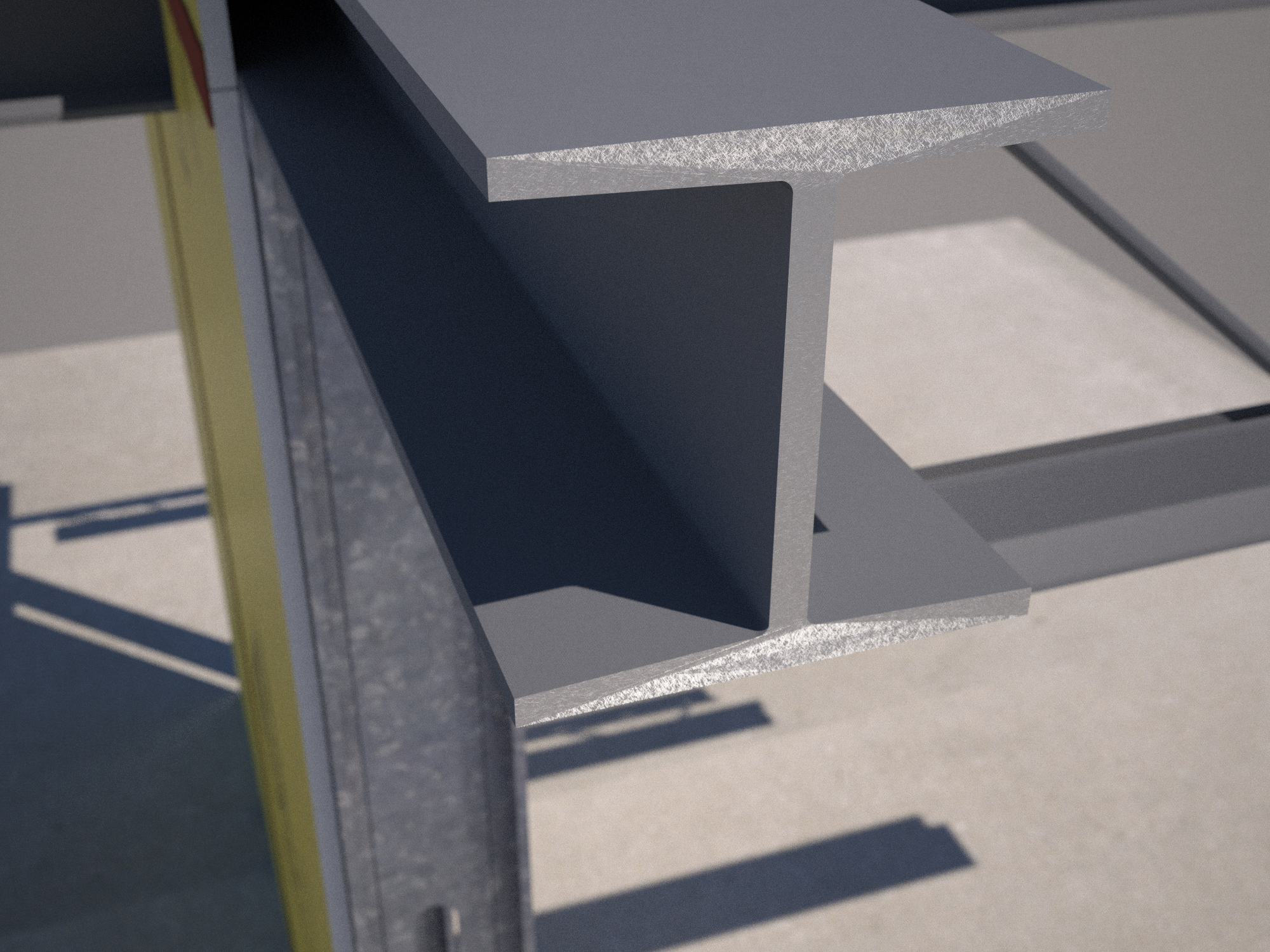 Seem to have a problem with this. As you can see from a quick render, the steel material where the steel beam is cut is distorted. The material for the uncut surfaces of the beam are a mat grey to simulate primer. Tried everything with no luck. Another thing, when i try to bevelled the edges to make it more realistic, all the beam's surfaces become one... Any help would be appreciated.