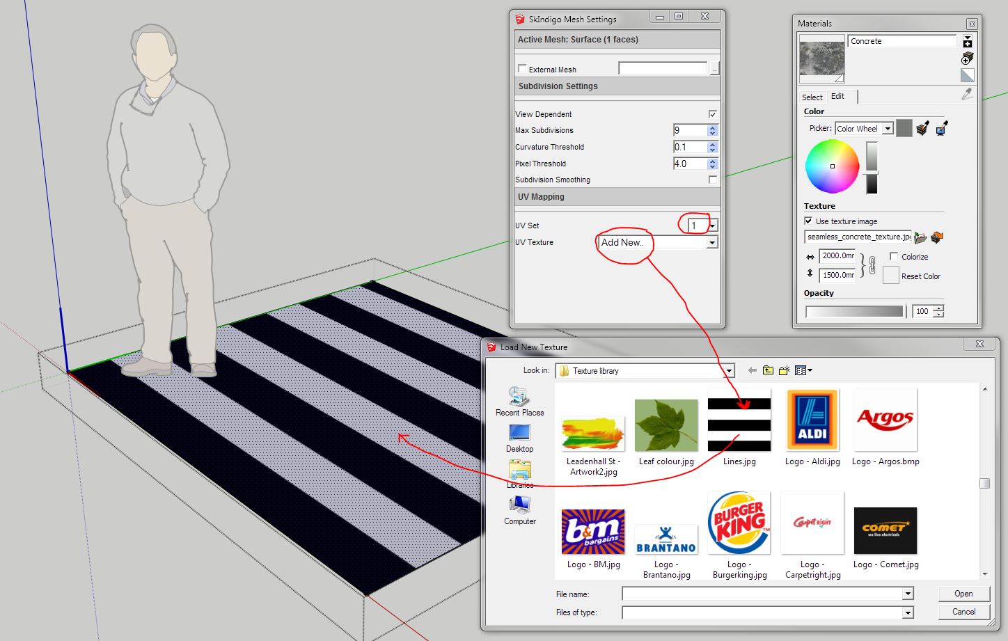 Click 'New' and navigate to the Lines texture. Note that in this drop down box you can have the textures used in your UV sets so you can switch between them easily.