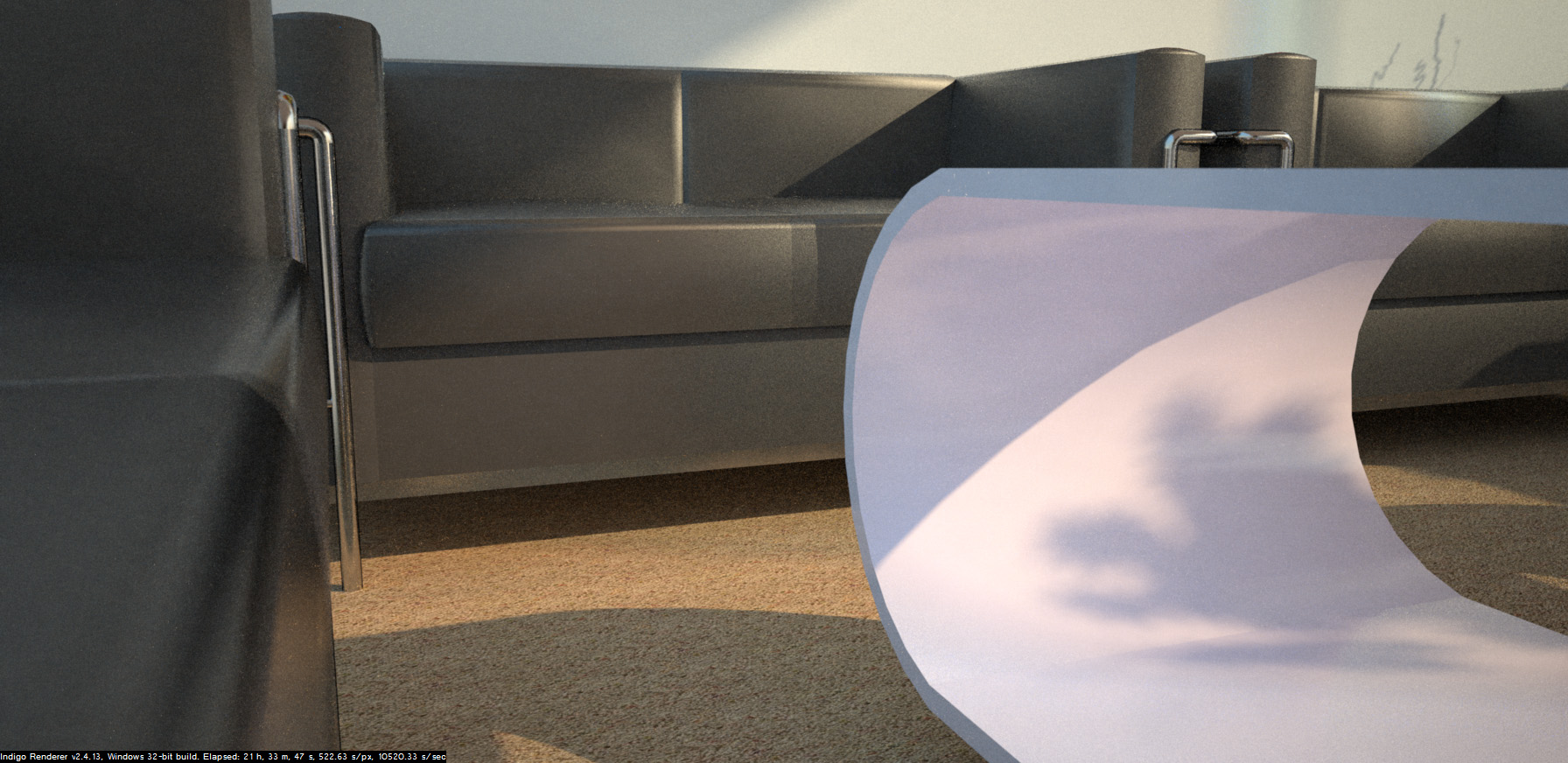 And I agree about speed of rendering - one of my biggest issues with Indigo (and I presume with any other unbiased renderers) is the length of time it can take to produce a smooth render. But I think thats compensated for by the quality of the results you get with Indigo, plus now theres GPU support etc, and combined with ensuring your models are set up correctly with the correct path tracing method set for the situation then you can get smooth renders within an hour or so sometimes.