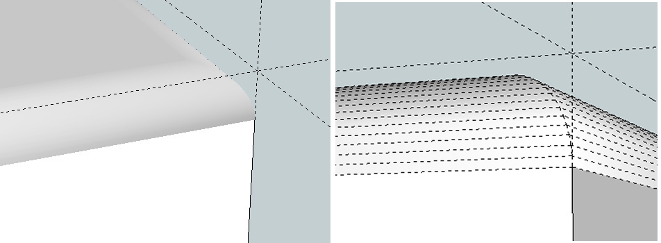 The wooden beams would look better with displacement - but how to avoid the "ugly" edges, because of the sharp corners? Probably I should use som ruby to bevel or soft them, but then I'll lost the sharp corners in SU usable for quick moving and such.
