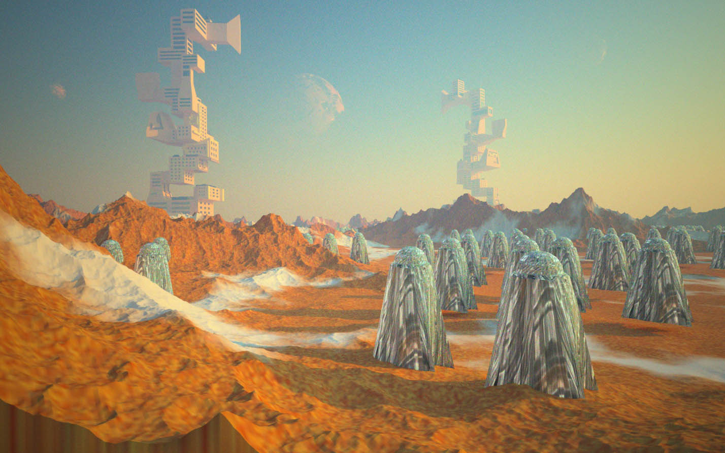 Note that some of the big towers stick up to the top of the medium, giving dramatic shadows.