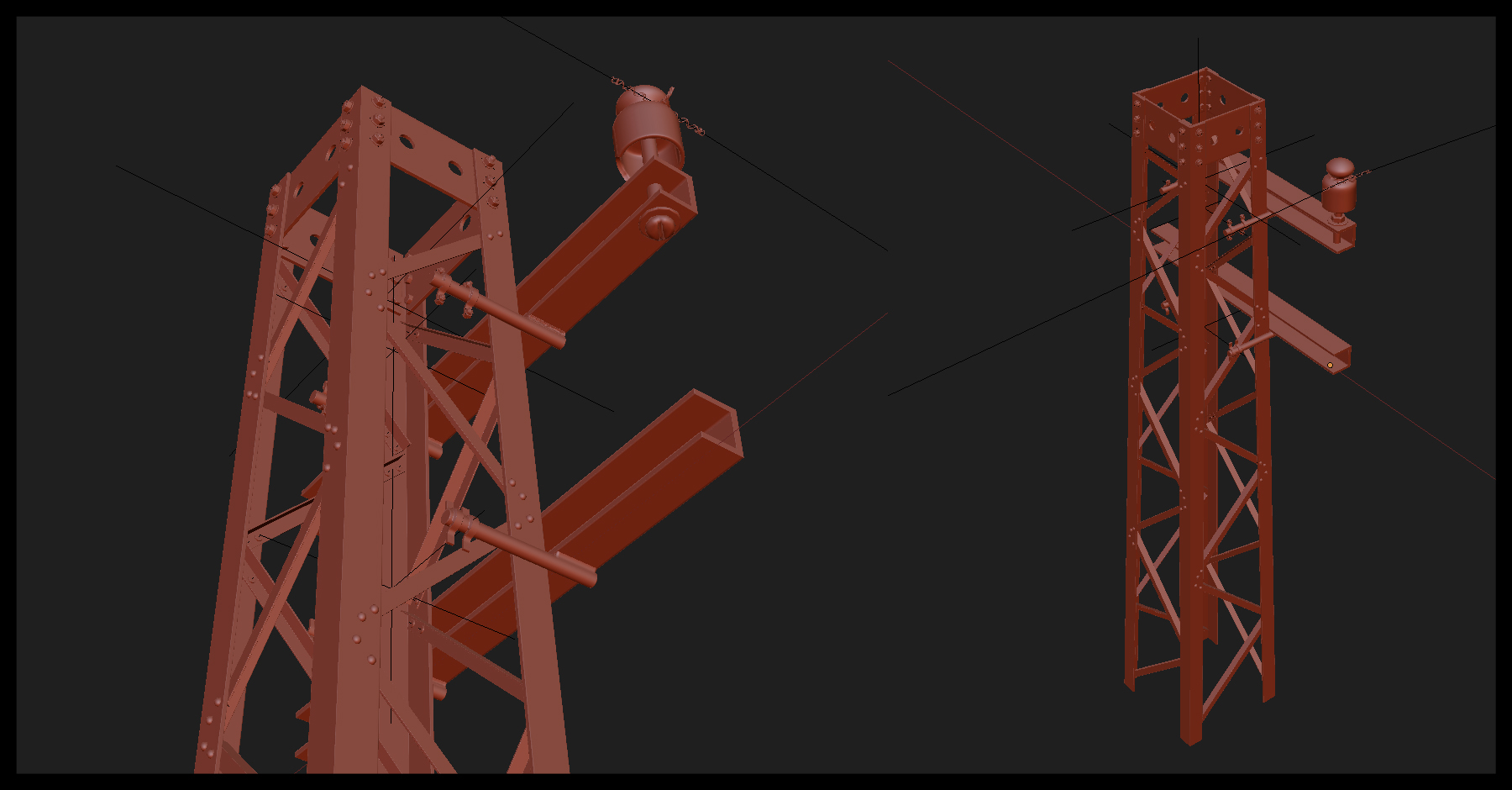 Unfortunately you cant really notice the weld part of the mounting (left image), maybe its also due to the monotonous rusted metal material over the whole model. I will change this in the future to get more contrast/focus on specific parts. On the next image you can see the weld part of the object within blender: