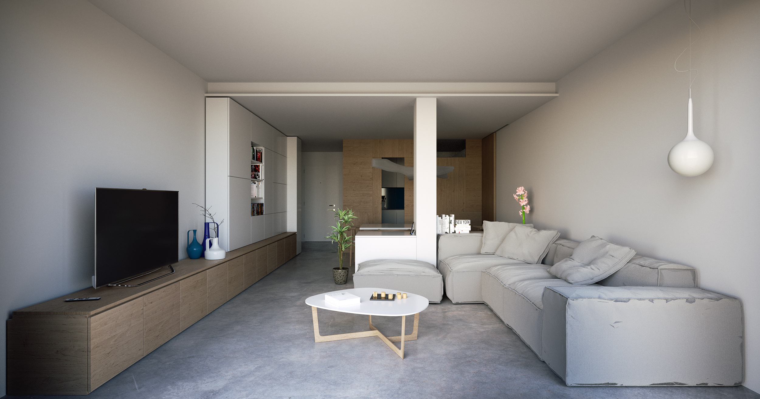 I'm currently working on a freelance architecture job for a friend who's trying to sell her apartment. The situation of the rooms' distribution is embarassing: I don't actually know how the constructor was able to sell this thing to her... BTW, the project here tries to bring out the living room - which at the moment is more sort of a corridor to the terrace - and make it a true LIVING space, where you can enjoy a book, eat with your friends and cook something good for your girlfriend not spoling the surprise using a open-space kitchen.