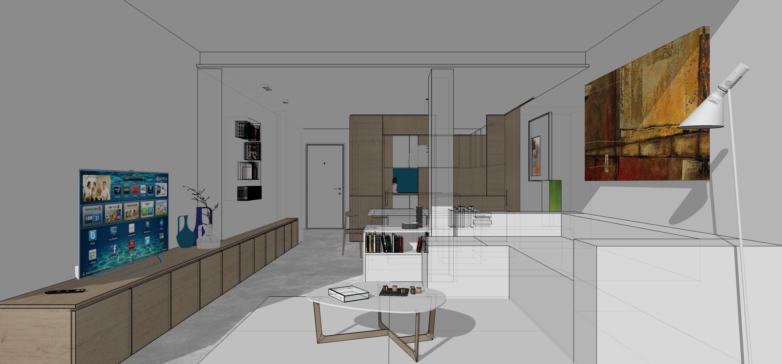 BTW, I want to render another day version, with much simpler ceramic tiles on the floor, just to have an option if the client isn't too modernist