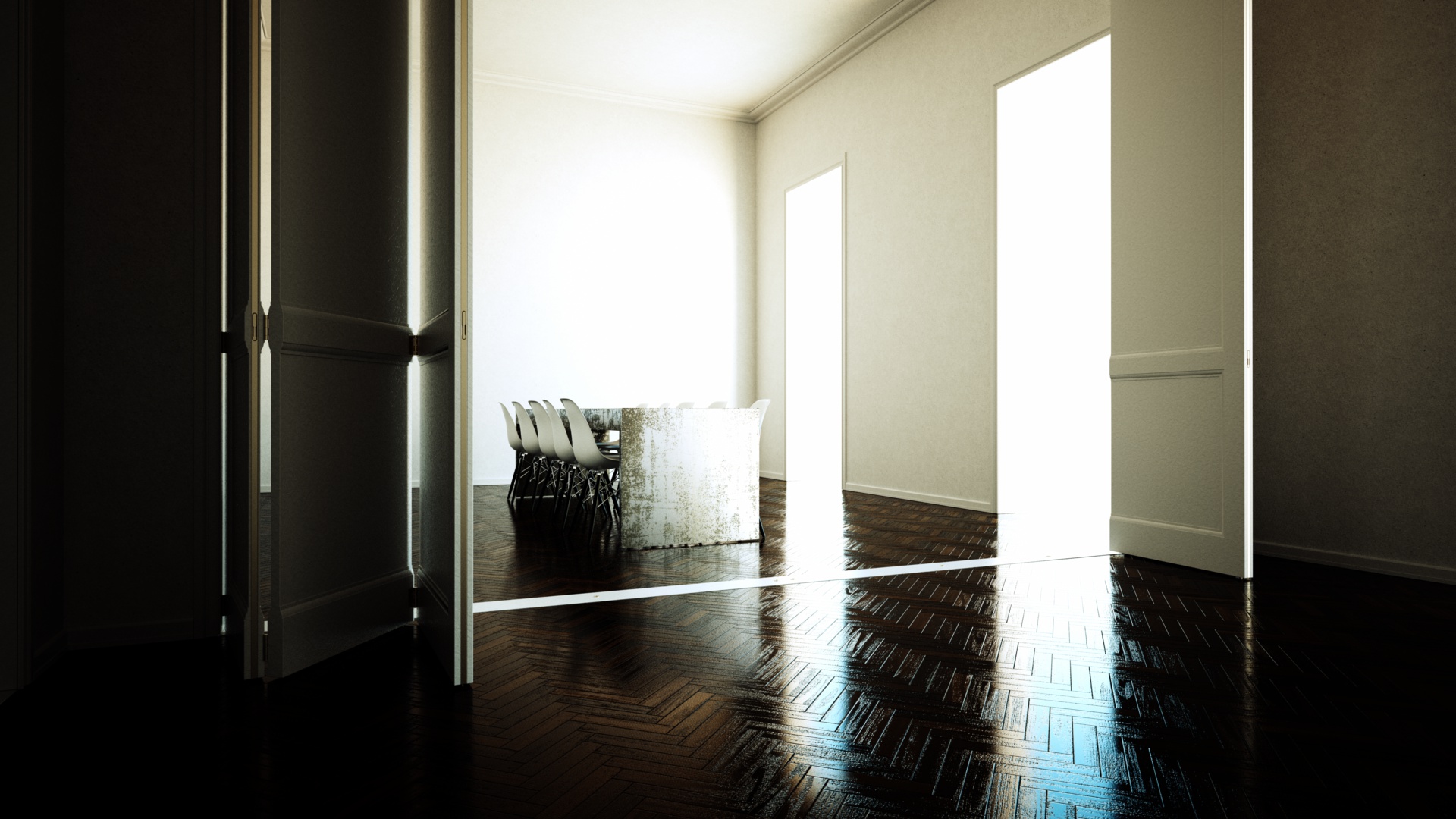 The scene was created during design finding for presenting a new wardrobe of a customer, but they decided to take another design I did. So I exchanged the wardrobe and have a image that can be used by me without breaking any NDA