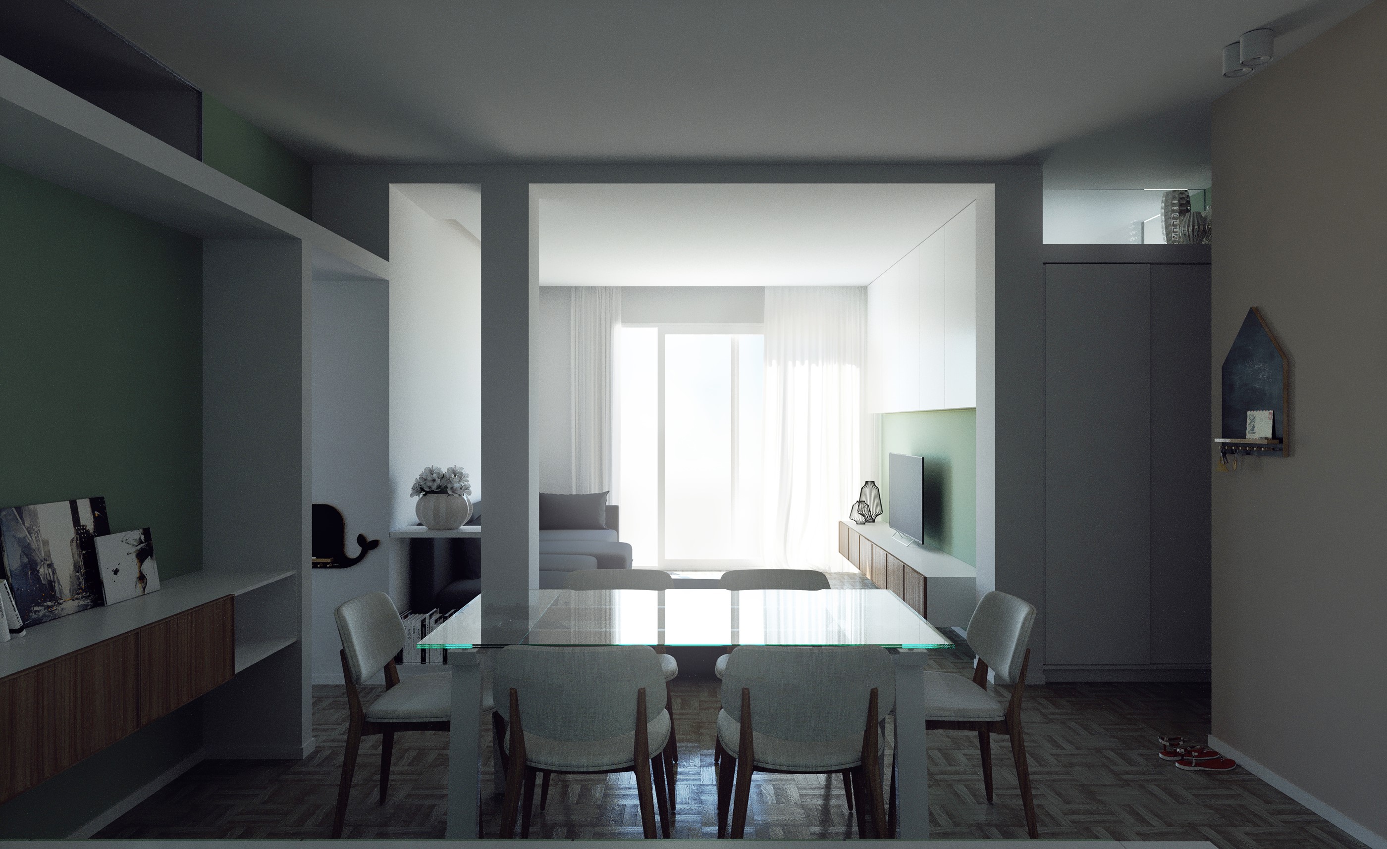 ..actually, one must work with what he has...In this case, the apartment is filled with restrictions (structural pillars, structural walls, water pipes everywhere...).