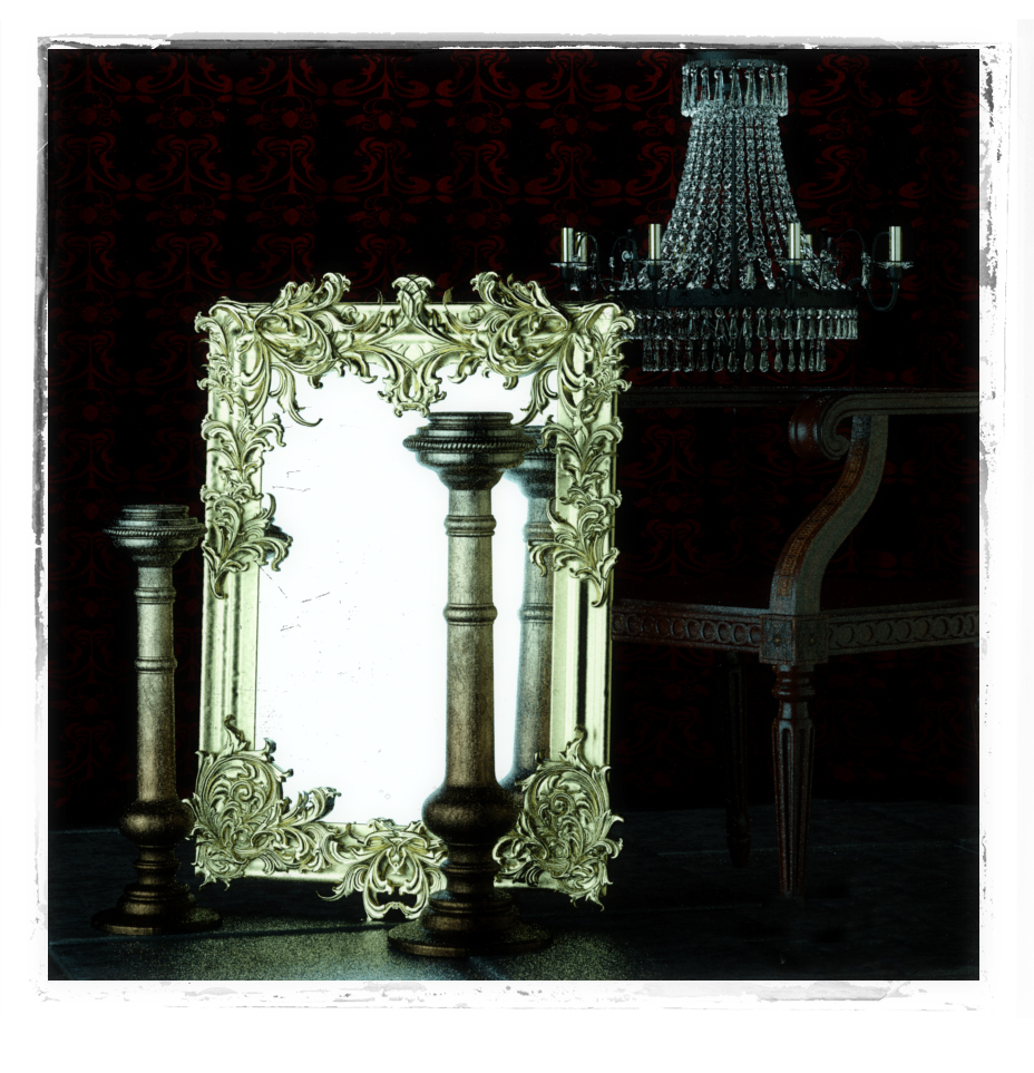 I am wondering how all the ornate decoration on the mirror and on the chair were modeled. Did you sculpt it ?