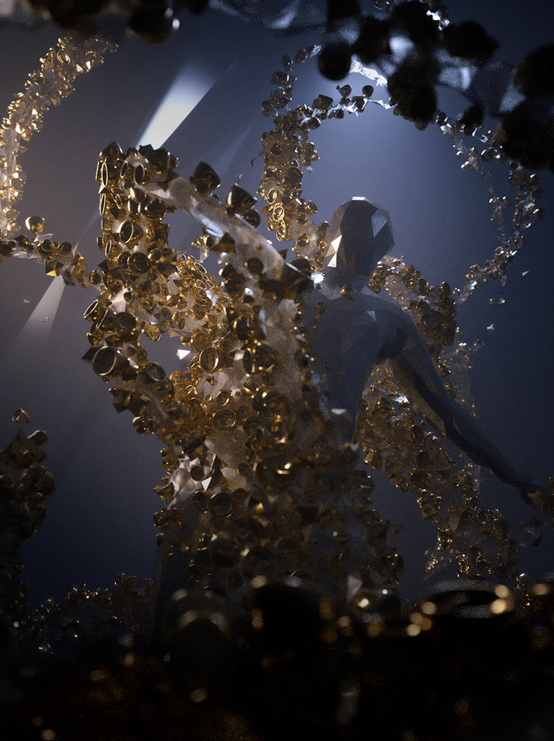 Some quick styleframe with Kinect mocap data and realflow meshes from a friend. Yeah it's noisy, just a quick something to get ideas and tests going \o/