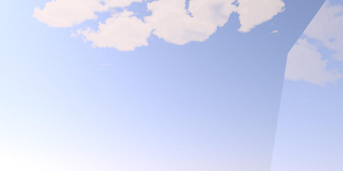Just to check how a blended material would behave so that I can add a new 'life' to Indigo's sky without the past and tedious workflow I had before. The material is made of diffuse transmitter plain white, blended with an alpha. On the right is a glass so that I could see how it would appear reflected on windows.