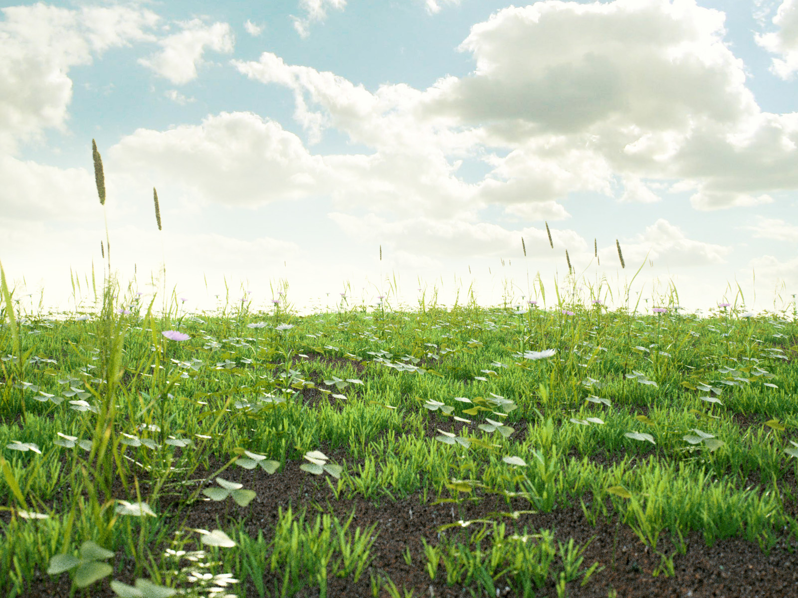I tested C4D's MoGraph with some grass & Flowers and rendered on the Ranch