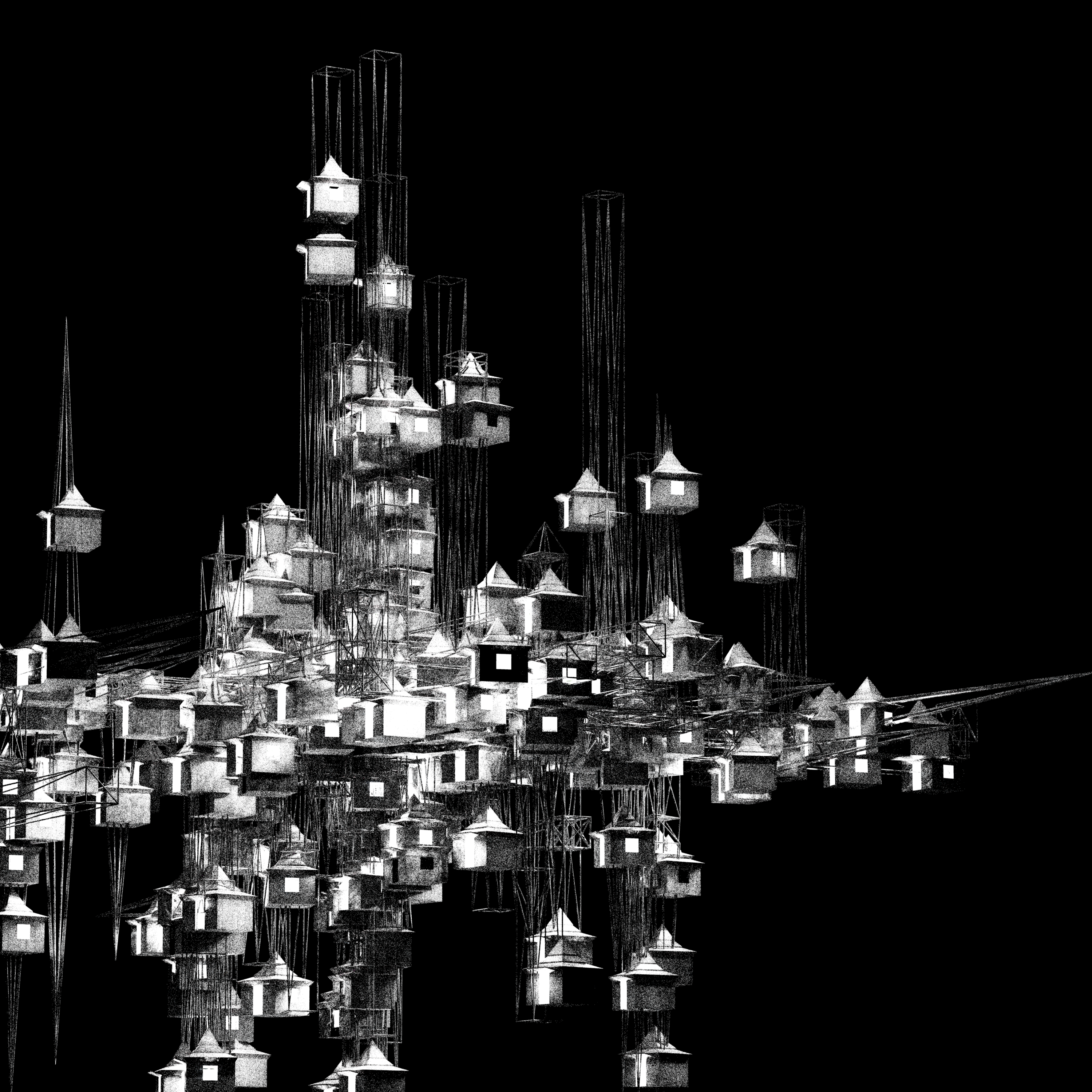 The only thing I did to it is slightly blurring it and applying some swirly fractal noise ontop in Multiply at 15% opacity. That's it. Loved the hatched sketch look in the raw render already, just tried to emphasize it.