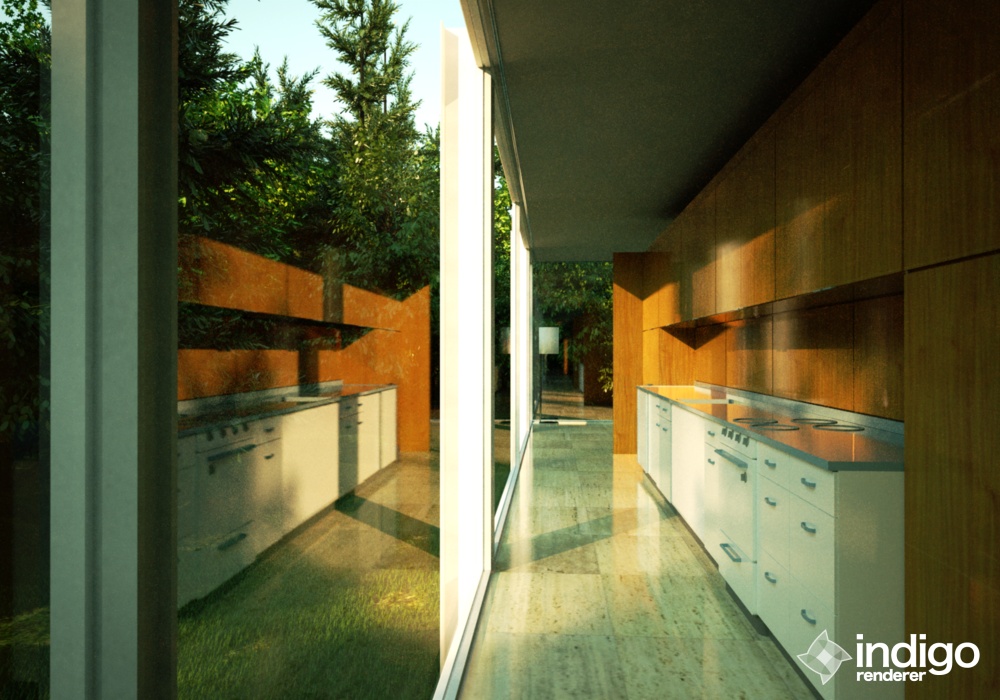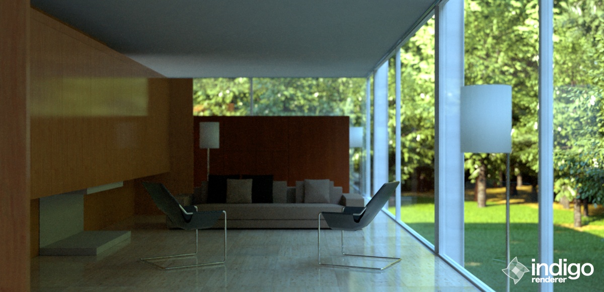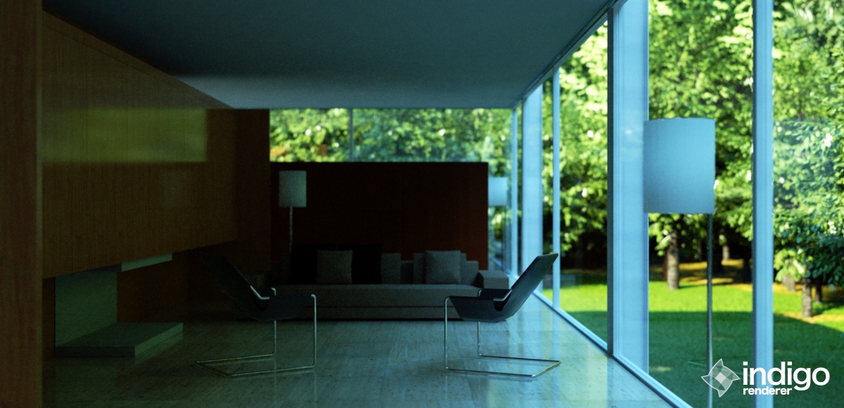 With the trees, much closer to the house, I re-rendered a previous scene.