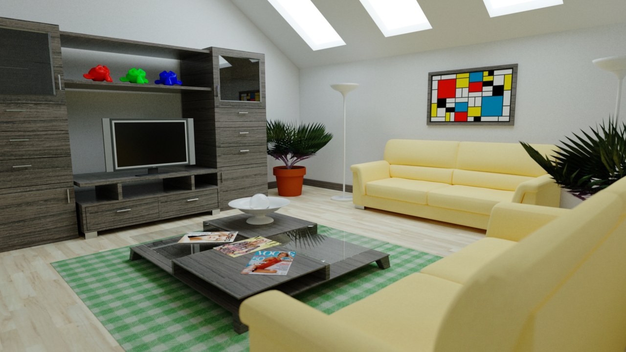 Well, technically you can get perfectly balanced interior images out of Indigo by lighting up shadowy areas with softboxes, using the right cameras, white balance etc. but I usually find it easier to achieve in PS.