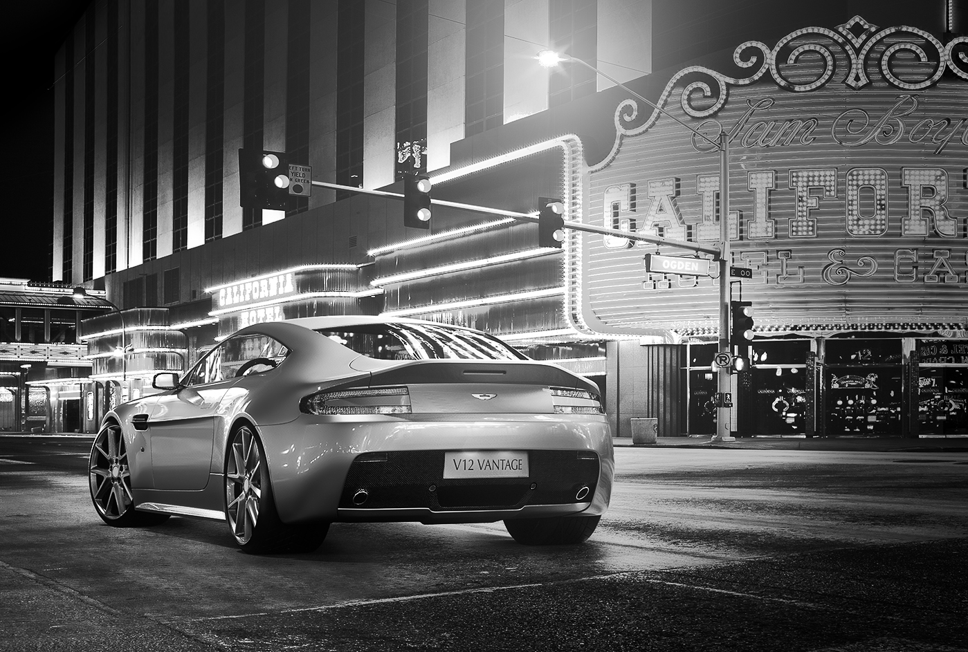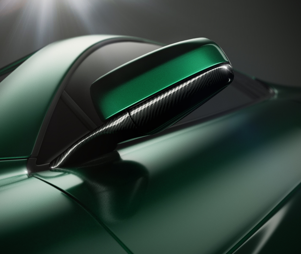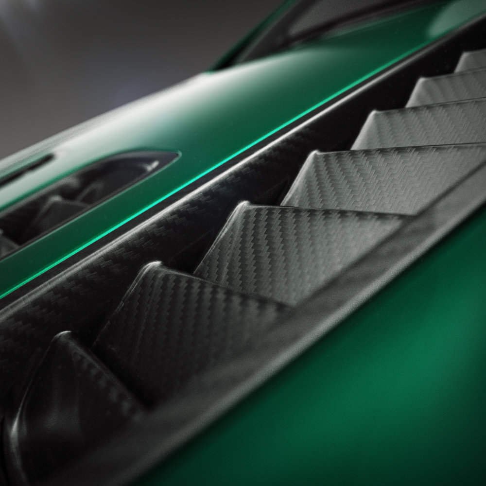 Testing the new metallic car paint and carbon materials. Aston in British racing green