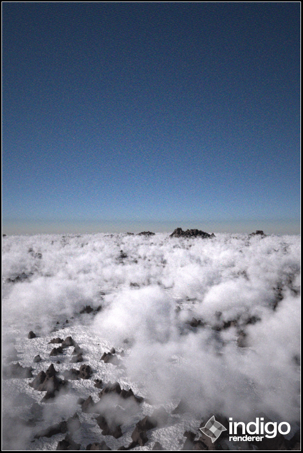 Nonetheless, is necessary a effective cut out to the shape (the clouds volume removes the atmosphere medium, this was the problem (yes, no, yes,...) from under the volume last day). The landscape is still nothing but a brutal fbm test (60x60 km).