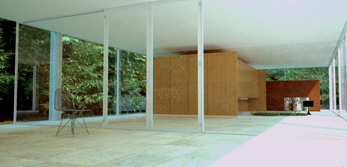 Hi marcocapela, thanks a lot for having an interest in this archviz study of the Farnsworth house. Right now I just learned from your tests that it is possible to use an exr map with a light emitter as a fake sun. I never thought of that before! Regarding the glass material, I used the ghost glass for the windows