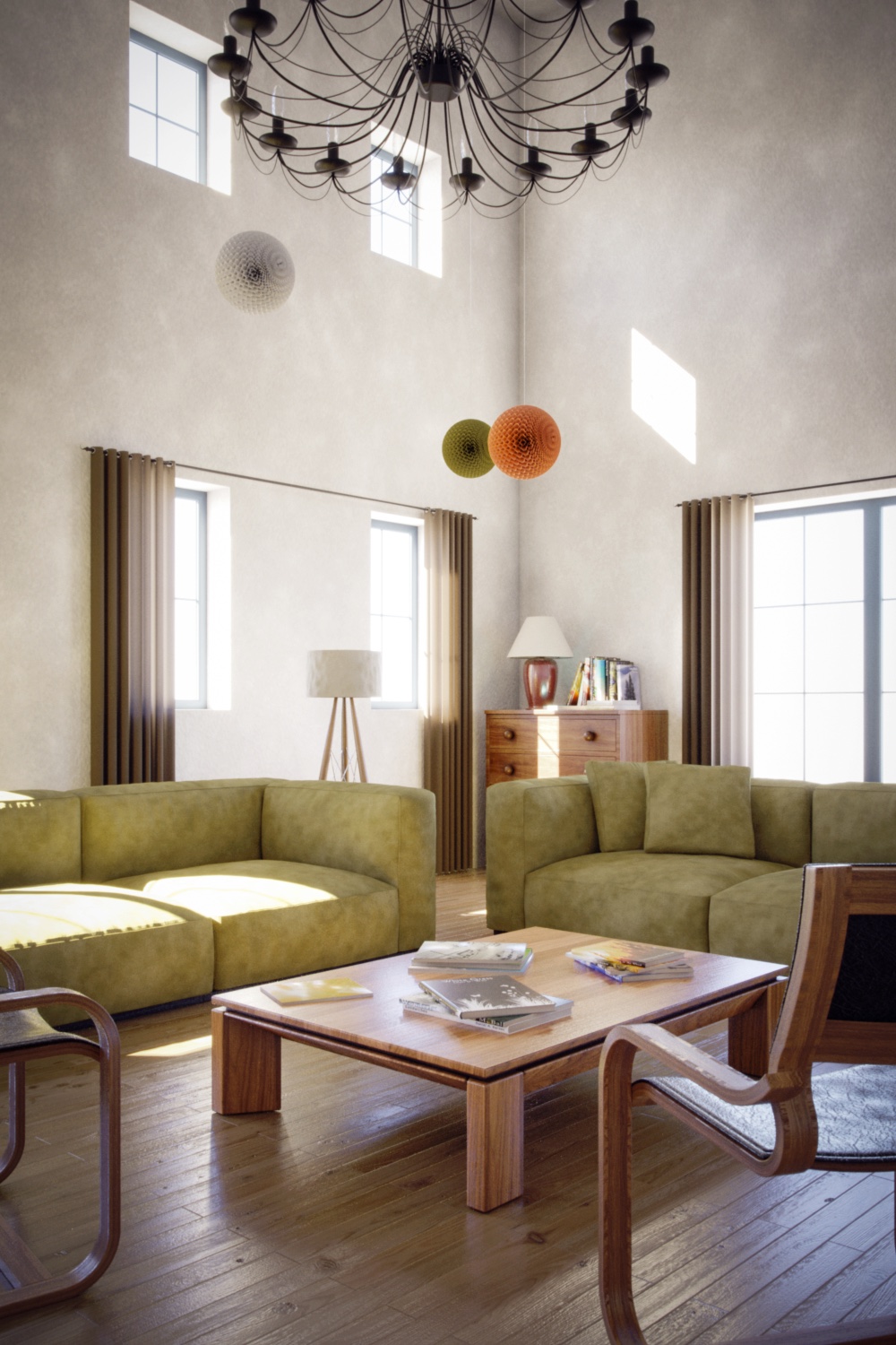 So the renders here are done with various mood from night to "white" day.