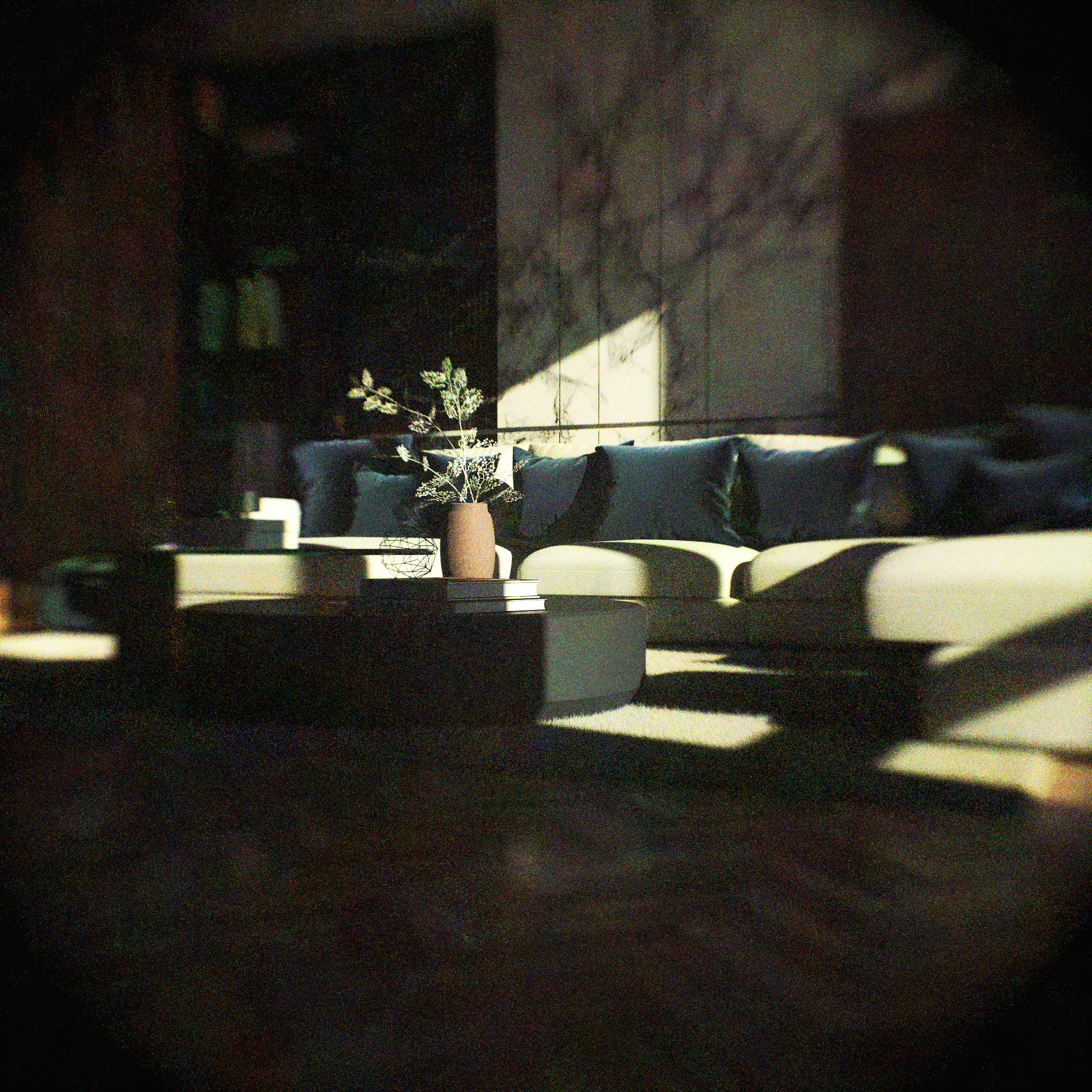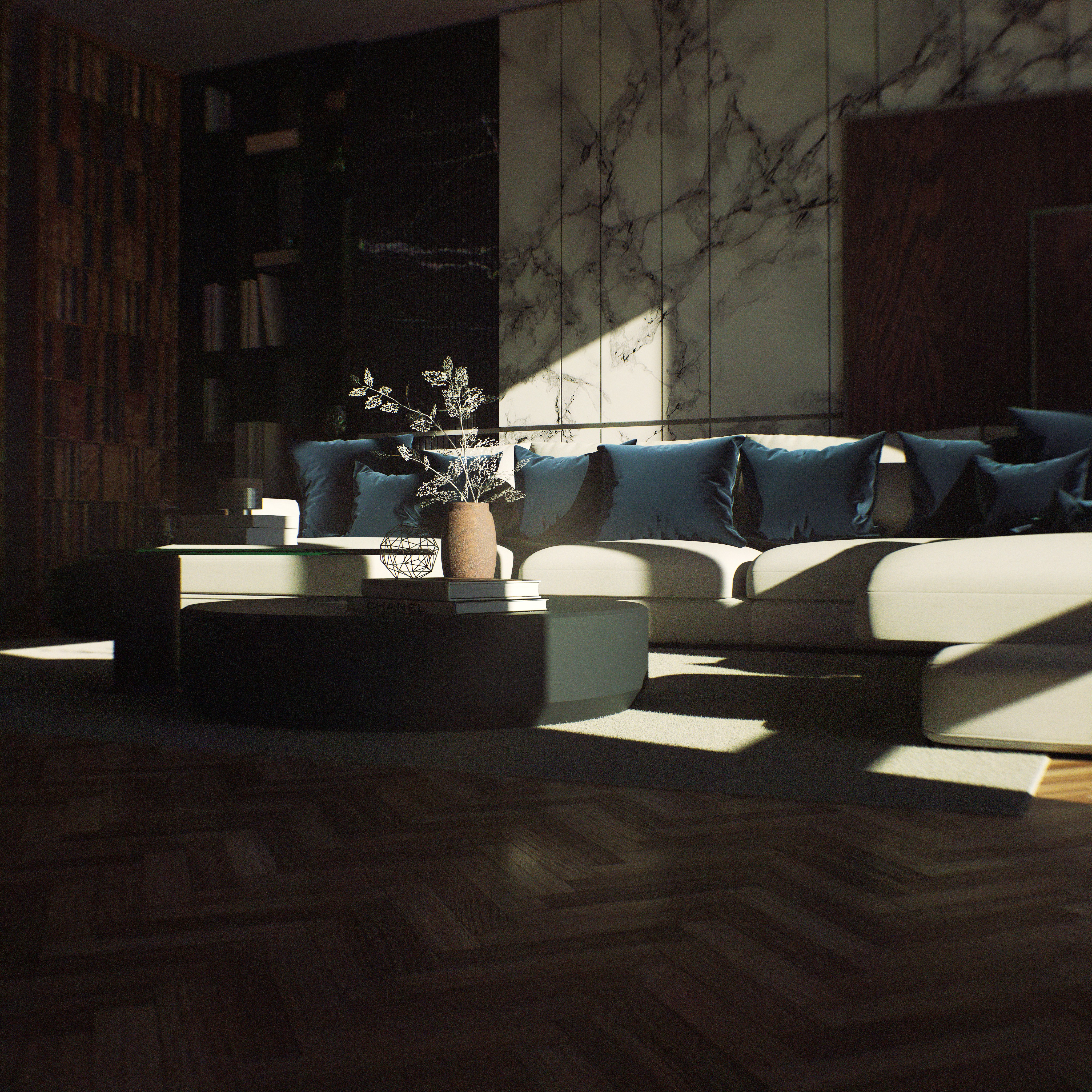 First attempt over this interior. Simple. Texture are free from internet, not the best at this moment. First attempt... A day of work with render time included. High contrast for the tones of the furniture that gives a dark image in general. Sun & Sky as lonely light source.
