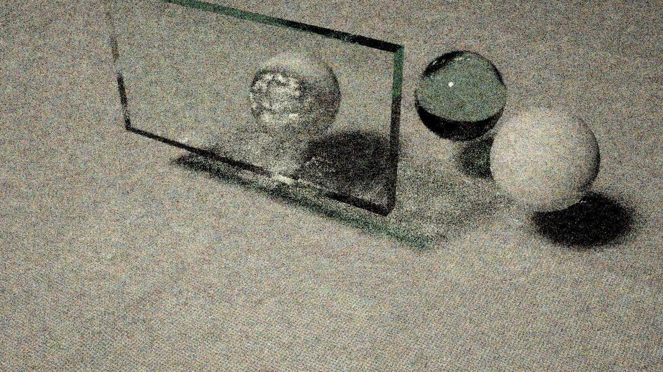 I have uploaded two comparisons, the scene is a simple sheet of glass and two balls, the glass has the "tinted green glass" material applied to it from the material database, and the two spheres have nothing applied to them at all which should default them to a diffuse white. One of the spheres is positioned behind the glass the other is not, I also placed another sphere in the scene with a glass material applied to it.