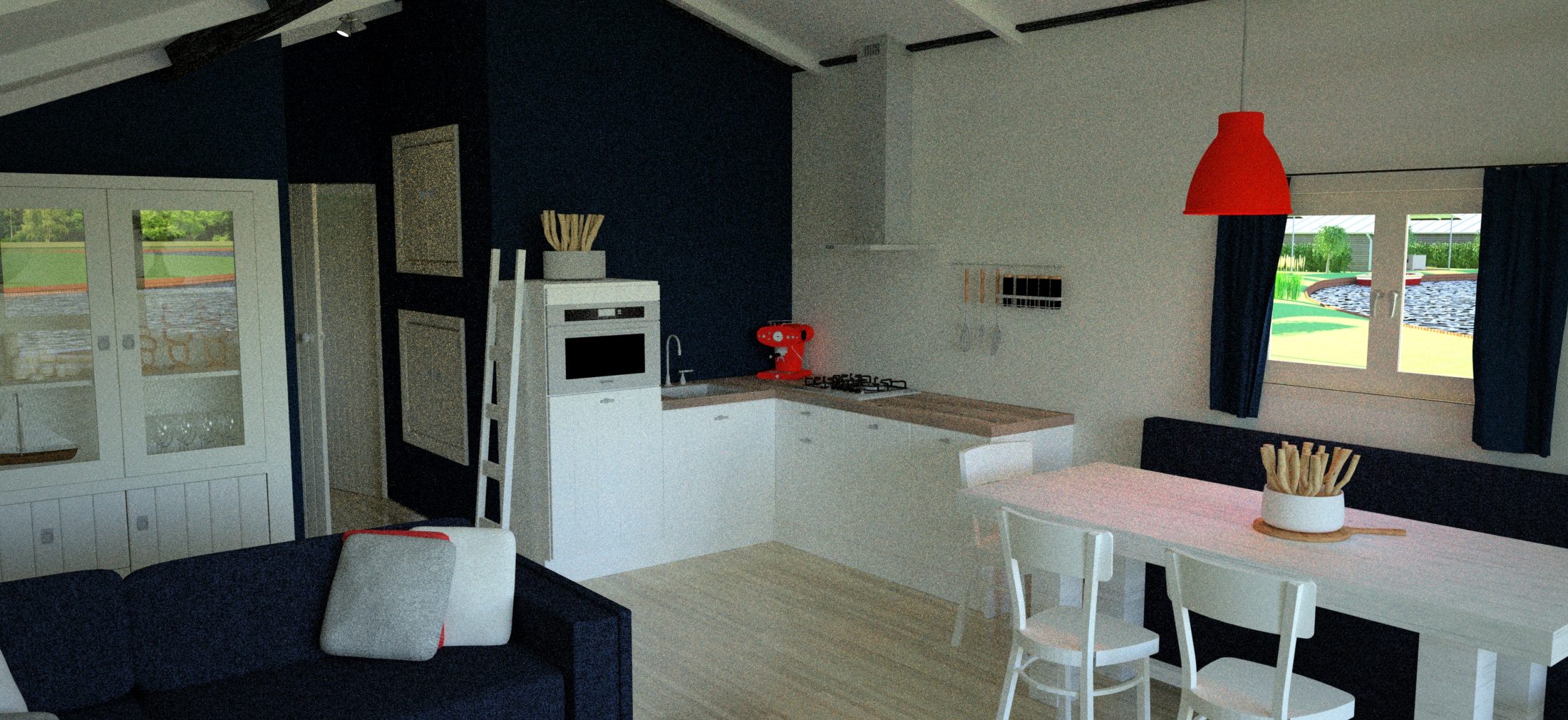 I added the render with lights out en linear, and the quick (7hour) render of the kitchen so you can see how big/small this is.