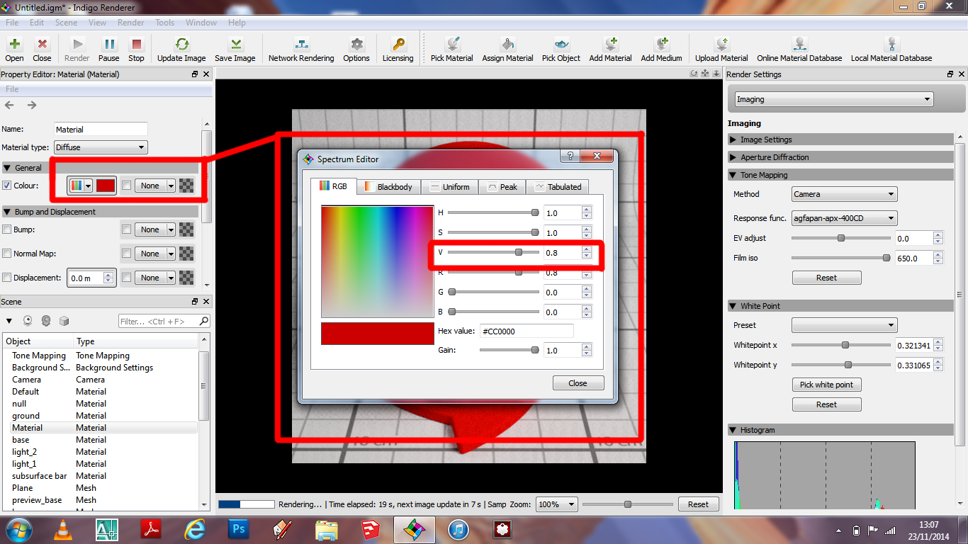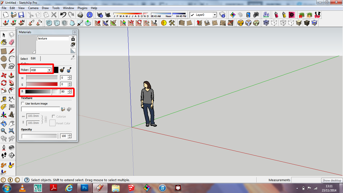 Either the 'B' setting (under HSB) in SketchUp or the 'V' value in Indigo. See images below.cholme@me.com wrote:When you say not to use a brightness of more than 80... where is that controlled? I think I am missing it.