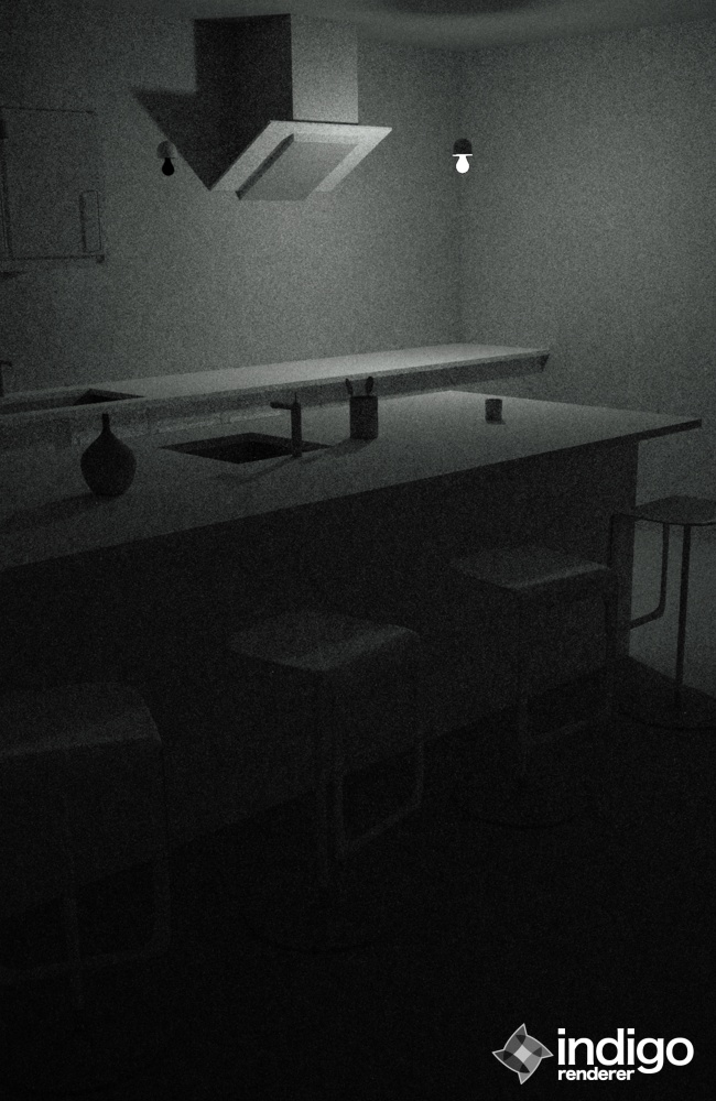 I think so, partly. See from what I understand the "photons" will bounce around x number of times, and if you work inside a completely enclosed space like your scene they won't have a choice but to reach that amount of bounce. However, there seems to be a system in place in indigo to determine when a photo is going to "never come back" by boxing in your scene with another box and so if the photon hits that box then it's "gone" and wont have to reach x amount of bounce.tlehmann1996 wrote:I added some ceiling lights and am rendering it again, but I was wondering something. This has nothing to do with the lighting issue, but I removed the two walls that aren't in view because I read somewhere that you should have open space so the photons don't bounce around an infinite number of times, increasing render times. Is that true?