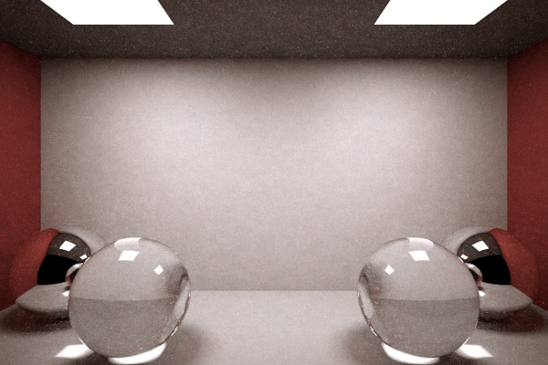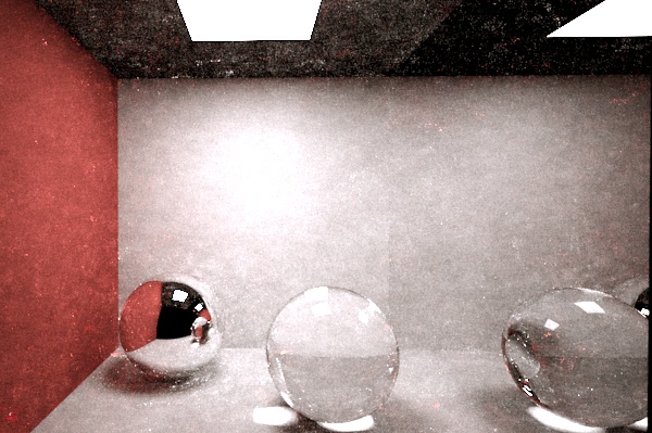 Than I have put a sheet of glass in front of the left sphere caustics and fog. They disappeared: why the sheet of glass turns that sphere shadow so dark? Not realistic (the glass has density 0).