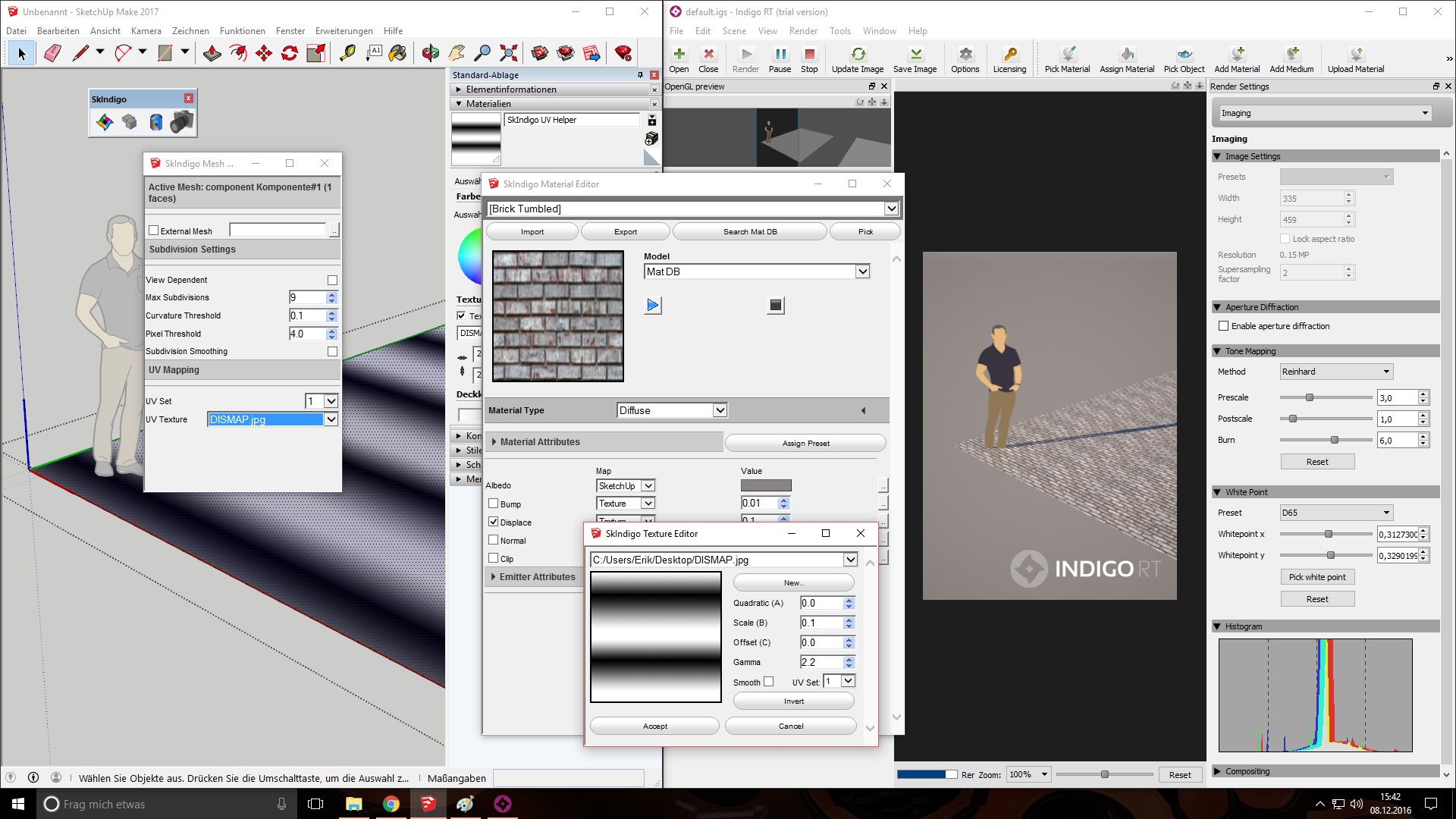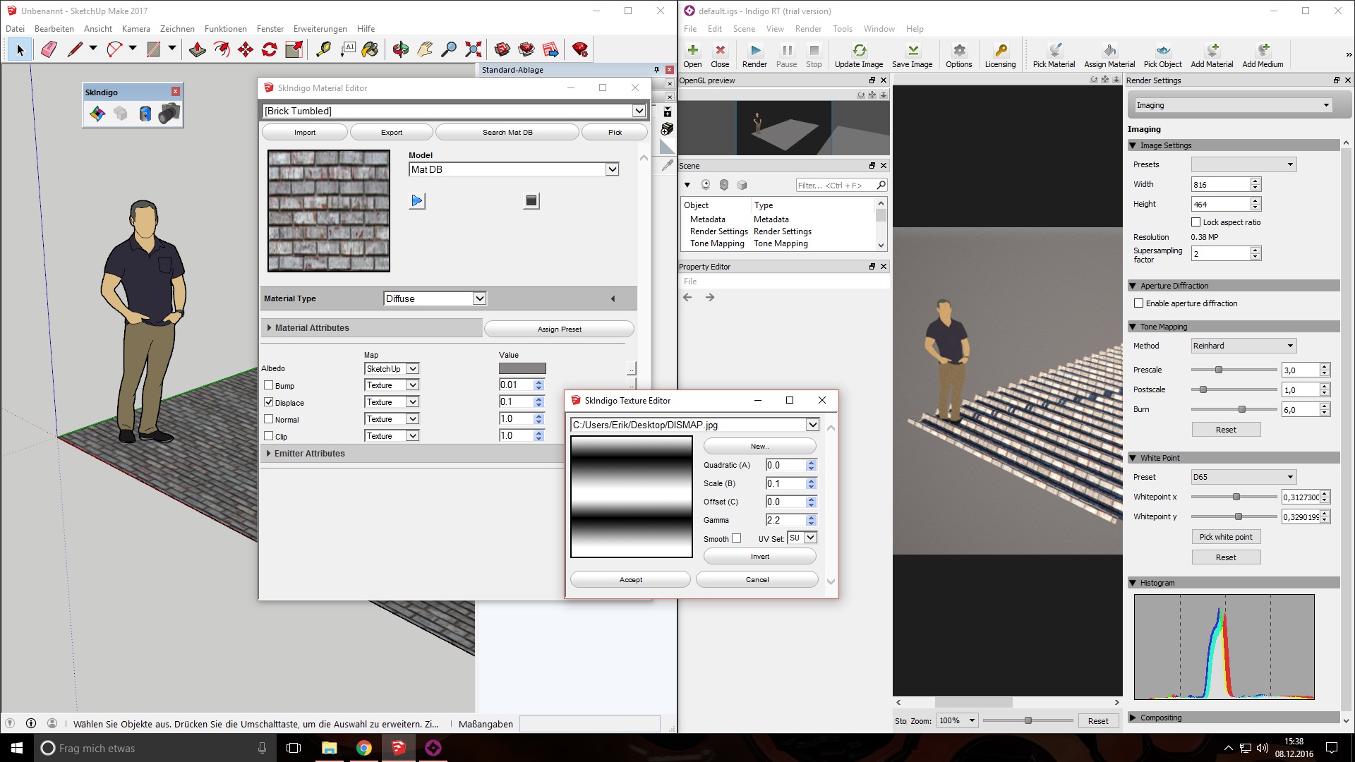 at the moment I test Indigo for Sketchup. I watched tutorials and read forum posts. But I stuck at creating a displace map.