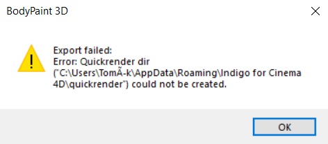 Indigo exporter first delete content in dir quickrender, sometimes it is imposible (files are opened or blocked)...than appear this error window. You can try restrart computer and delete files in quickrender manualy...