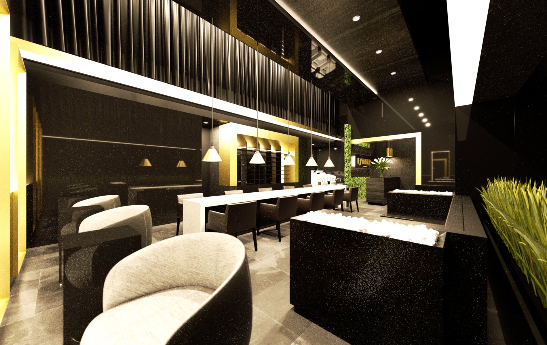 I've designed a Beauty Center/Nail Spa , and the project is full of emiters, artificial lights, polished surfaces , glass , mirrrors...plus ,the space is mostly black.