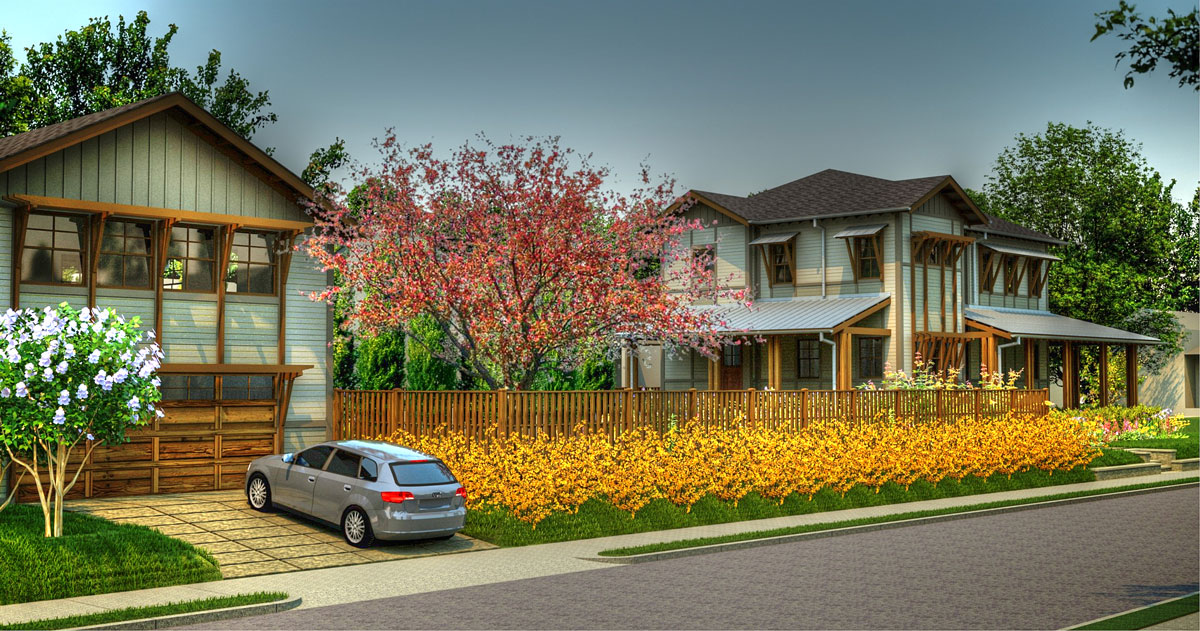 Renderings: Model built in Revit then exported to Sketchup w/ 2D landscape.