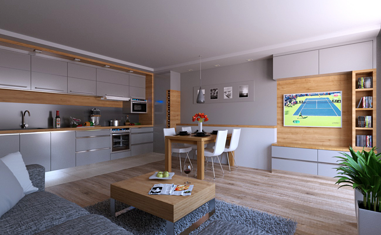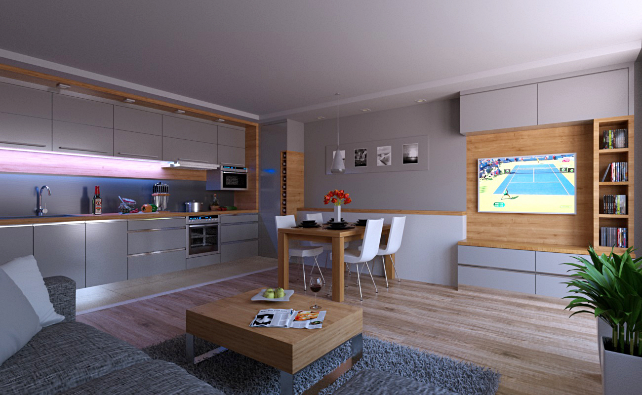 - The couch beeing that close to the camera really looks very... simple! maybe you can find (or buy) a better one, otherwise change the tiling on it, the texture is too big. Also having some small DOF blur could "hide" the quality of that close up Object a bit.