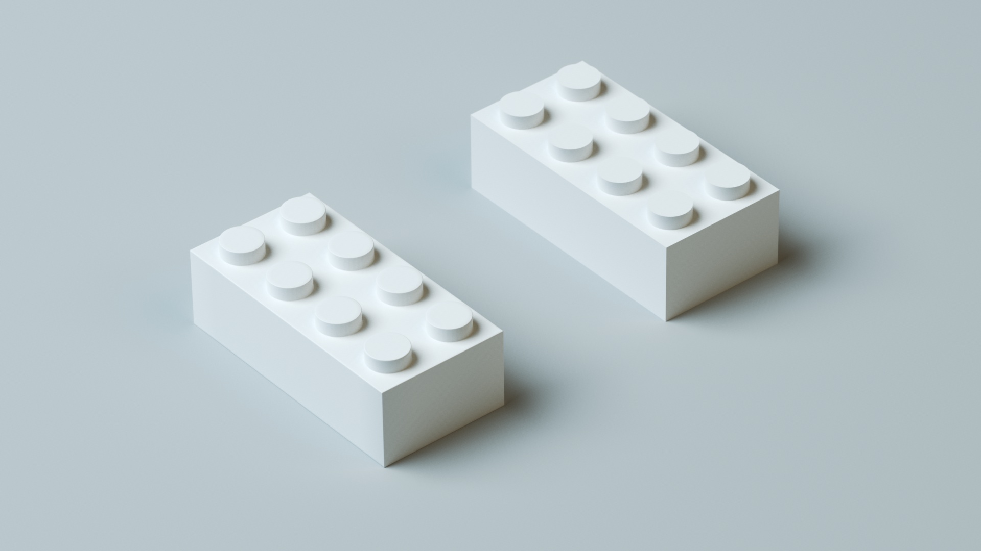 Here's an example of two unbranded building blocks, one of them is beveled, the other is not. The difference is subtle (and gets lost in the focus blur...), but it's there. Both bricks are flat against the ground plane.
