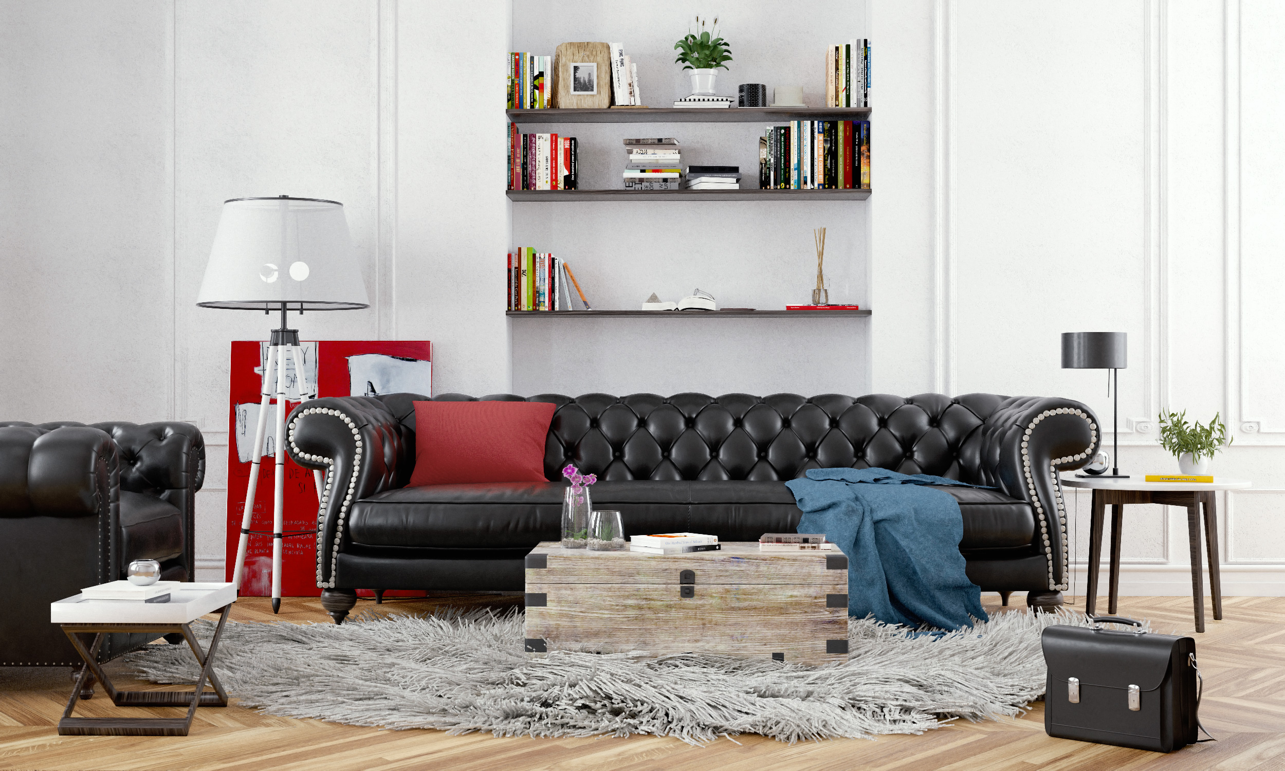 Chesterfield sofa baxter scene render.