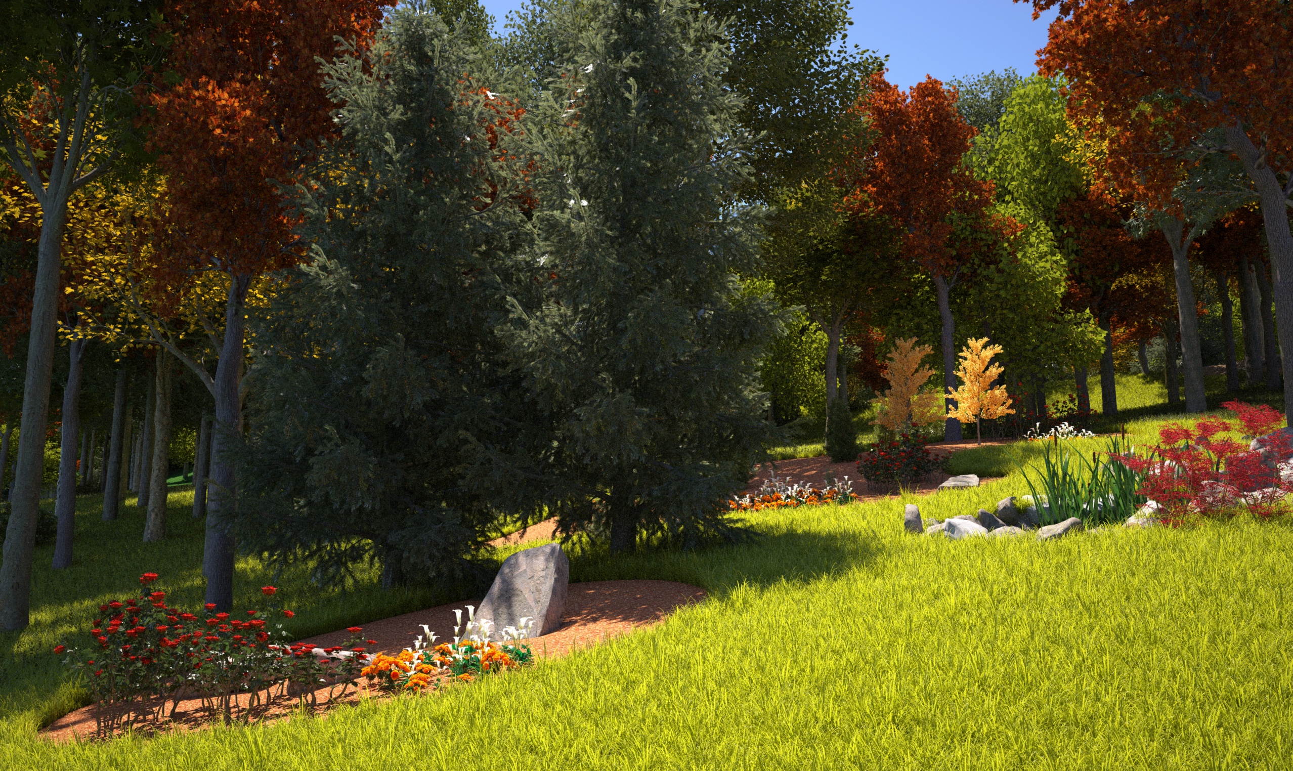 I understand that the problem is with the hue and saturation of all materials. I have perhaps 30 different plant/tree models, from different sources. Fortunately, there aren't too many different materials in each. I'll try going back to the source, and color balancing these.