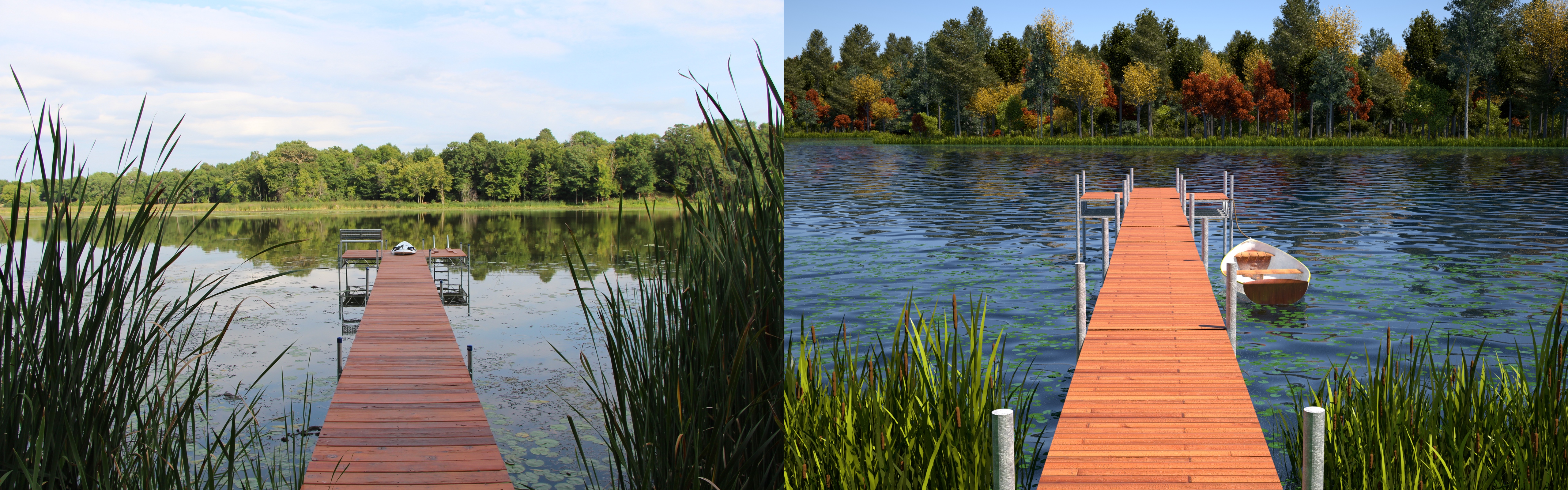 Comments and criticisms would be appreciated! I'm constrained in the composition of the scenes, since this is an actual property. (I'll attach some aerial shots of it.)