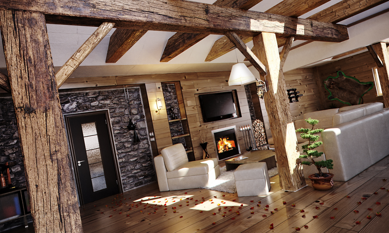 The timber texture looks great! Nice bump and subtle reflection on that. The floor seems a bit too flat... maybe a stronger bump map?