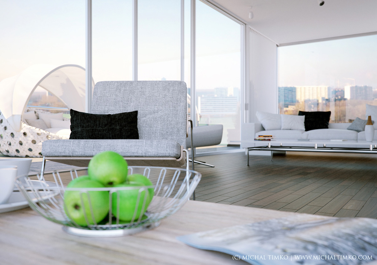 Did you model the stuff on the terrace ? the lovely spherical opened covered chairs ?